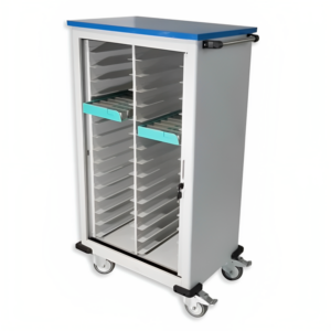 CHARIOT À MÉDICAMENTS AVEC PLATEAUX HEBDOMADAIRES À PORTE VOLET