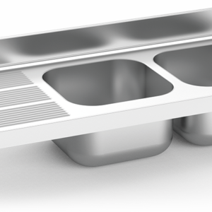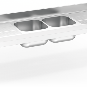 ÉVIER SUSPENDU AVEC GOUTTES, 2 SEAUX ET 2 ÉGOUTTEURS