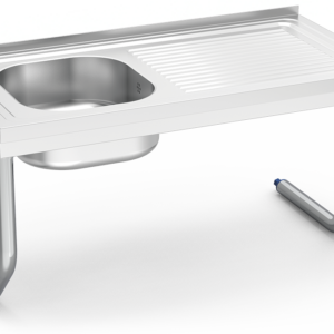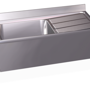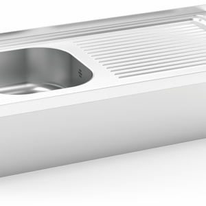 ÉVIER SUSPENDU EN ACIER INOXYDABLE AVEC JUPE, SEAU ET ÉGOUTTOIR À DROITE