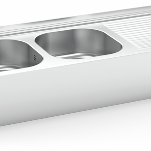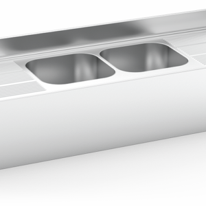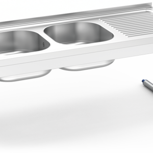 ÉVIER SUSPENDU AVEC JUPE, DEUX SEAUX ET DEUX ÉGOUTTEURS