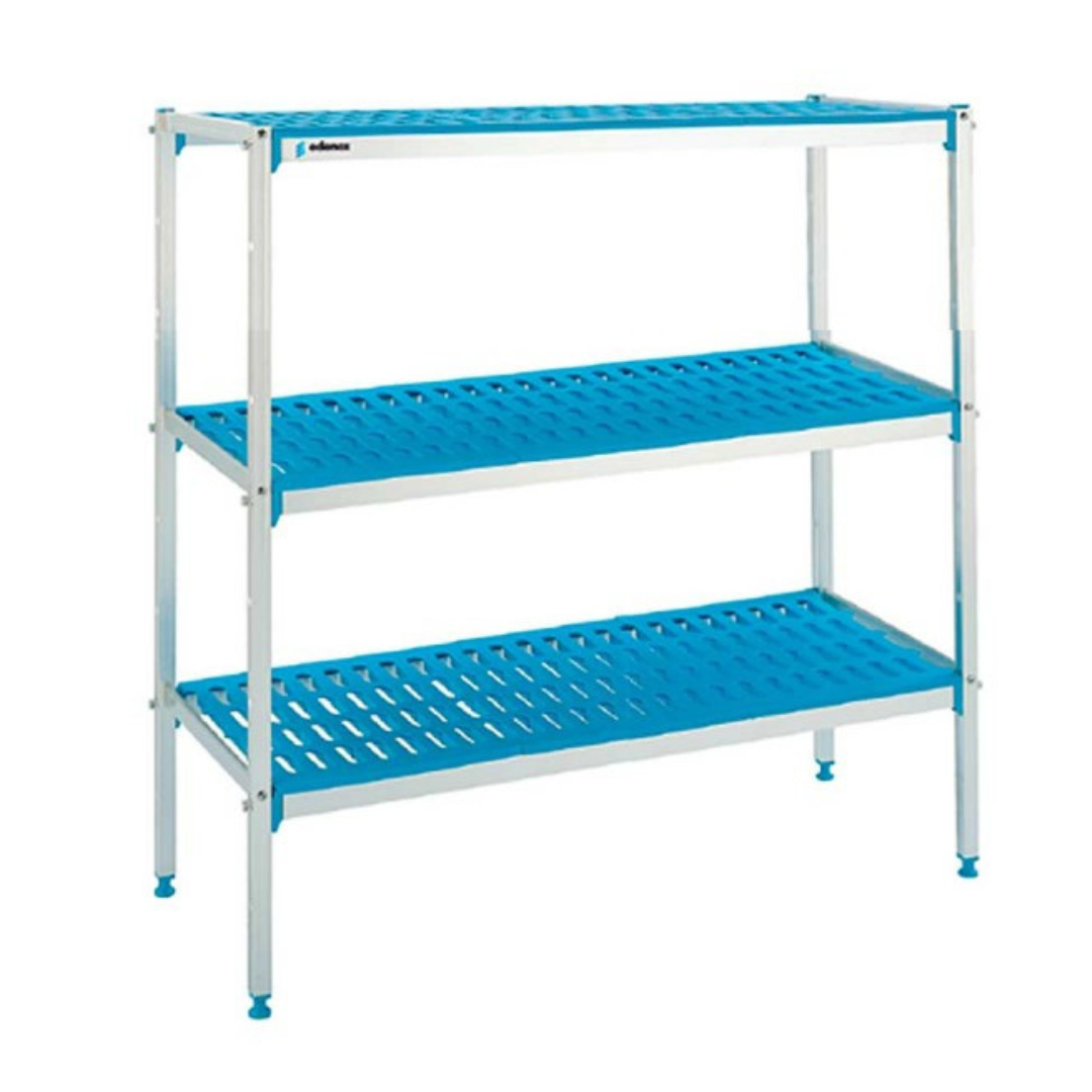 étagère en aluminium et en polyéthylène de 3 étagères à fond 400 mm. Structure en aluminium anodisé et étagères avec des grilles alimentaires en polyéthylène. Spécialement conçu pour être utilisé dans les chambres de réfrigération et dans les exigences de santé les plus exigeantes. Ses multiples combinaisons offrent une plus grande efficacité dans l’organisation et le stockage.