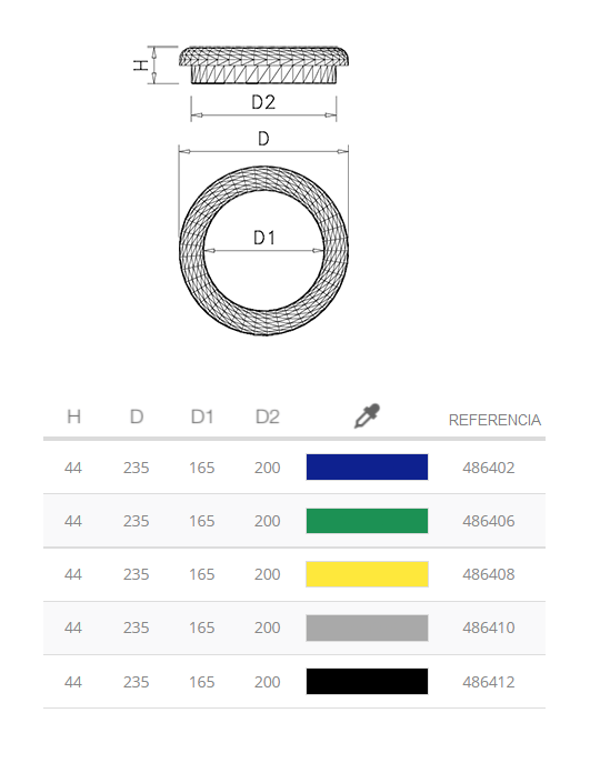 – Anneaux de différentes couleurs avec votre référence: