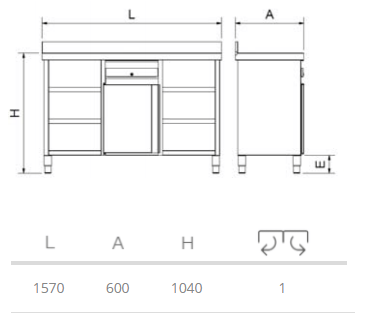 – tiroir avec un trou pour un marc de café et un placard de porte pliant.