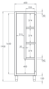 – Il a des jambes réglables de 150 mm et peut être relevée de 850 à 900 mm.