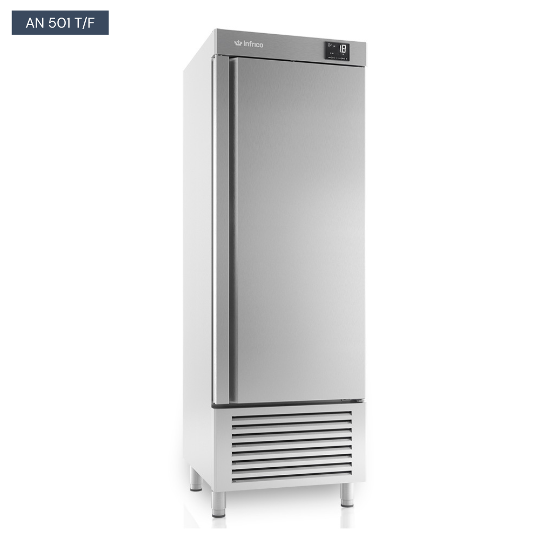 – Mesures: 687 x 700 x 2060 mm – Température de travail: -2ºC / + 8ºC (refroidissement, réfrigérant R-290) – Classe climatique: 5 / 40ºC – Tension / fréquence électrique: 230 V / 1 Ph / 50Hz – Contrôleur numérique IP65 – Matériau: AISI 304 en acier inoxydable – 55 mm d’épaisseur – Isolement: 40kg / CFC gratuit CFC / ZERO ODP – GWP – Capacité: 500 L – Numéro de portes: 1 – Nombre de grils / guides: 3/3 (530 x 460 mm) – système froid forcé. – Descarche: pour le compresseur. – Expansion capillaire. – Power: 250 W. Frig Power. 370 WA-10ºC) – Consommation: 1,45 kWh / 24h) Classe d’énergie C