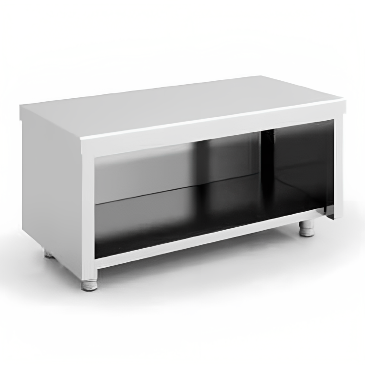 Meubles ouverts sans étagère avec une hauteur réduite de 600 mm, fabriqués entièrement en acier inoxydable. Disponible dans différentes mesures et modèles. Idéal pour le secteur de la nourriture et de l’hospitalité.