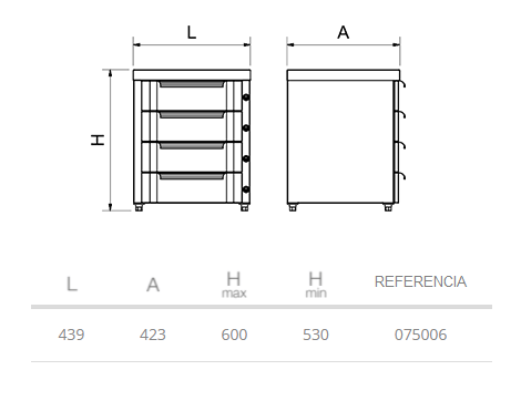 – Mesures: 439 x 423 x 530 mm (hauteur maximale 600 mm).