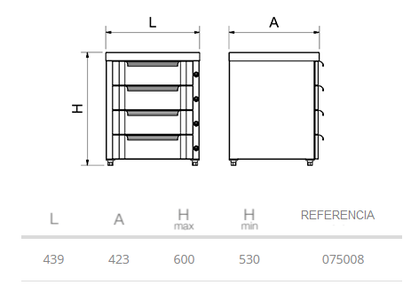 – Mesures: 439 x 423 x 530 mm (hauteur maximale 600 mm).