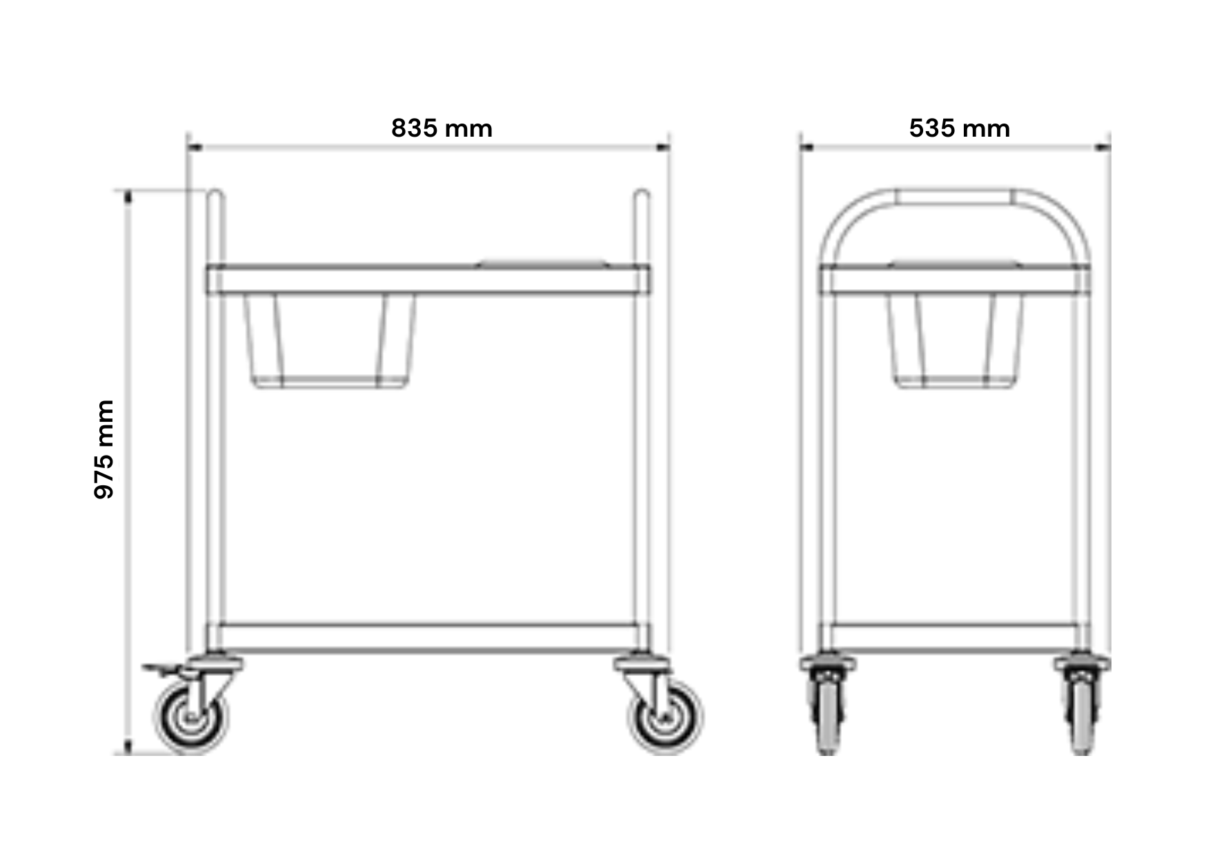 – voitures de service en acier inoxydable avec étagère.