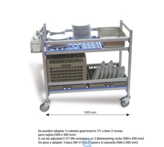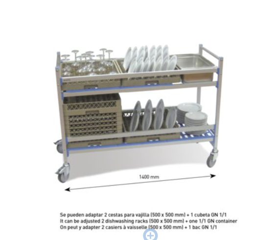 – voiture en aluminium, pour le transport dans la salle à manger de l’hôtel, le restaurant ou les collectivités. De 2 niveaux.