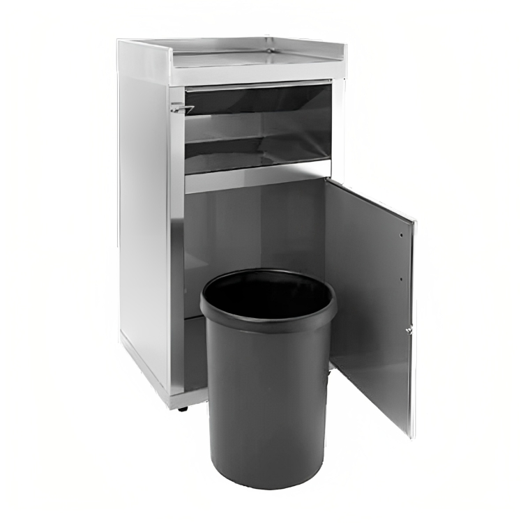 Contaiteur de déchets en acier inoxydable , fabriqué en acier inoxydable AISI-304 18/10. Indispensable dans les restaurants de restauration rapide, buffets, libre-service et terrasses. robuste et résistant.