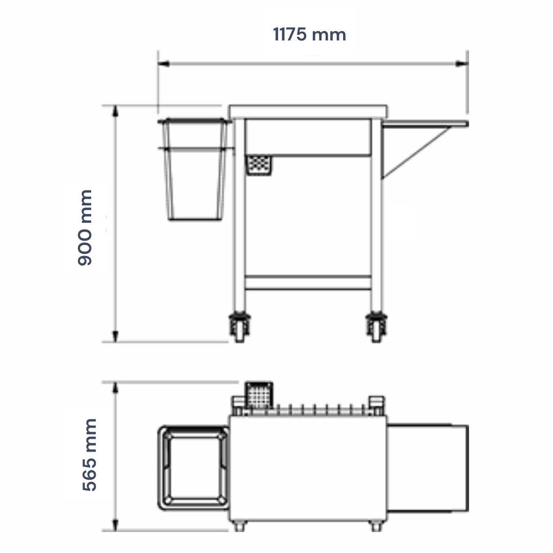 2 Roues rotatives sans frein, acier inoxydable et surface de roulement en nylon.