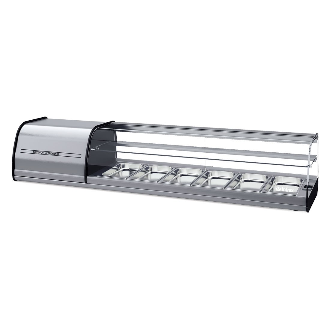 Vitrina, dans un profil en aluminium anodisé argenté (modèles P) et haut de gamme dans AISI 304 en acier. Disponible dans différentes mesures.
