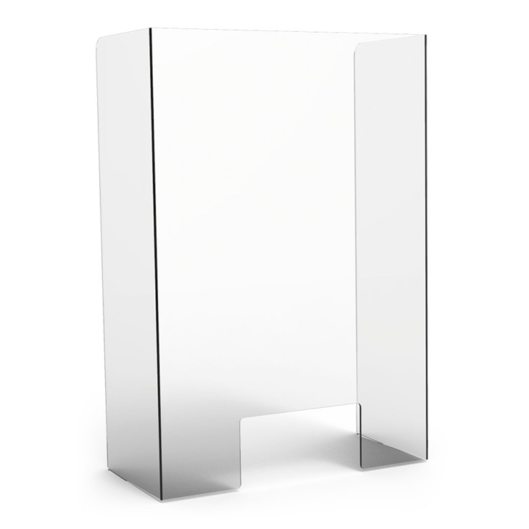 en plastique PETG, cet écran de protection est spécialement conçu pour localiser les magasins dans lesquels le public devrait être servi à une distance considérablement réduite, comme dans la ligne des boîtes d’un supermarché, d’une pharmacie, d’une banque , d’un tabac, etc.