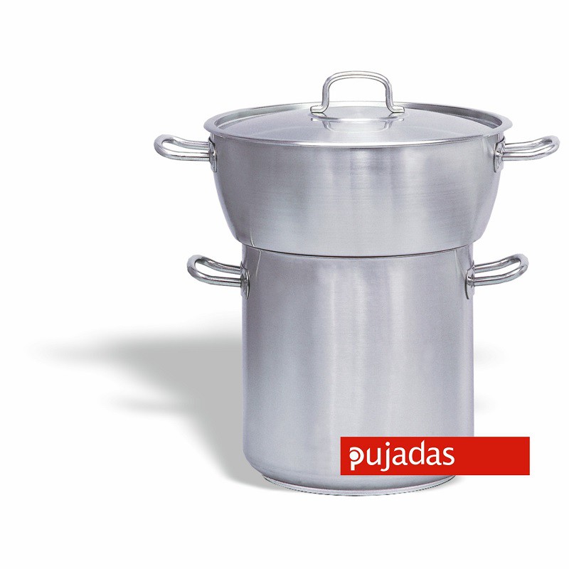 Cuscusera a pompé 60 cm avec un couvercle fabriqué entièrement en acier inoxydable. Conçu pour l’hospitalité et les cuisines domestiques pour la cuisson et la cuisine. Intègre deux poignées pour une gestion optimale du cuscusera.