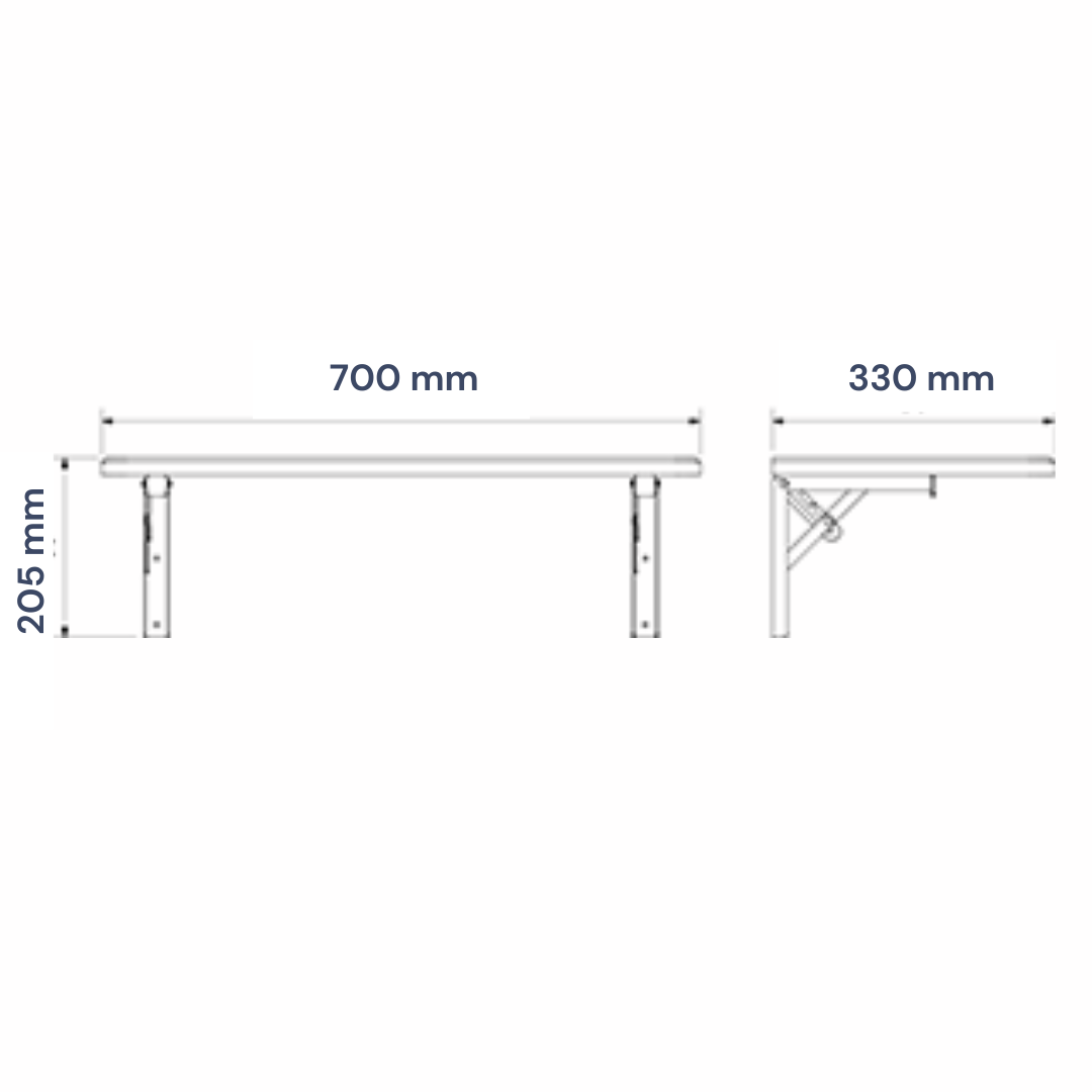 – étagère murale de pliage des fibres en mesures de 700 x 330 x 205 mm.