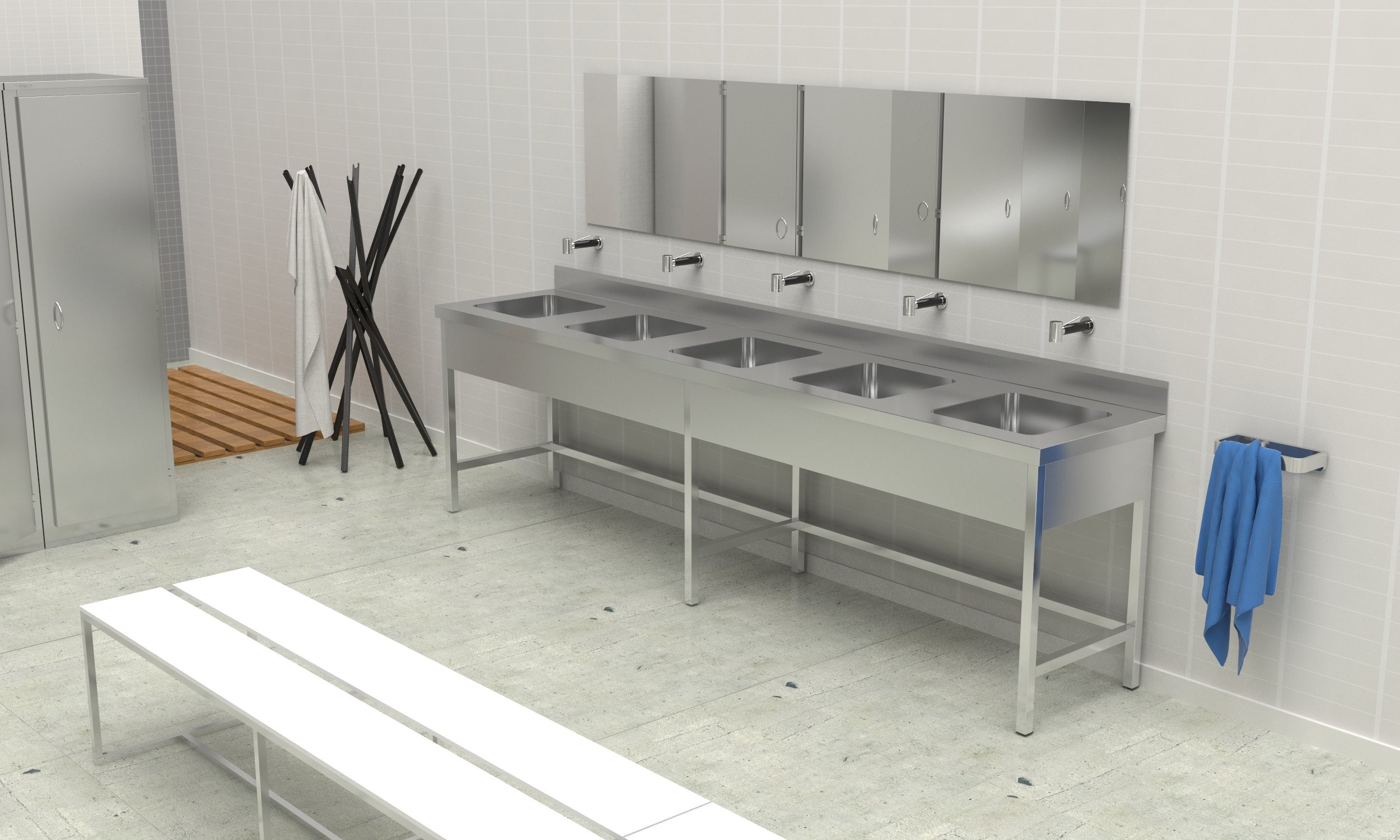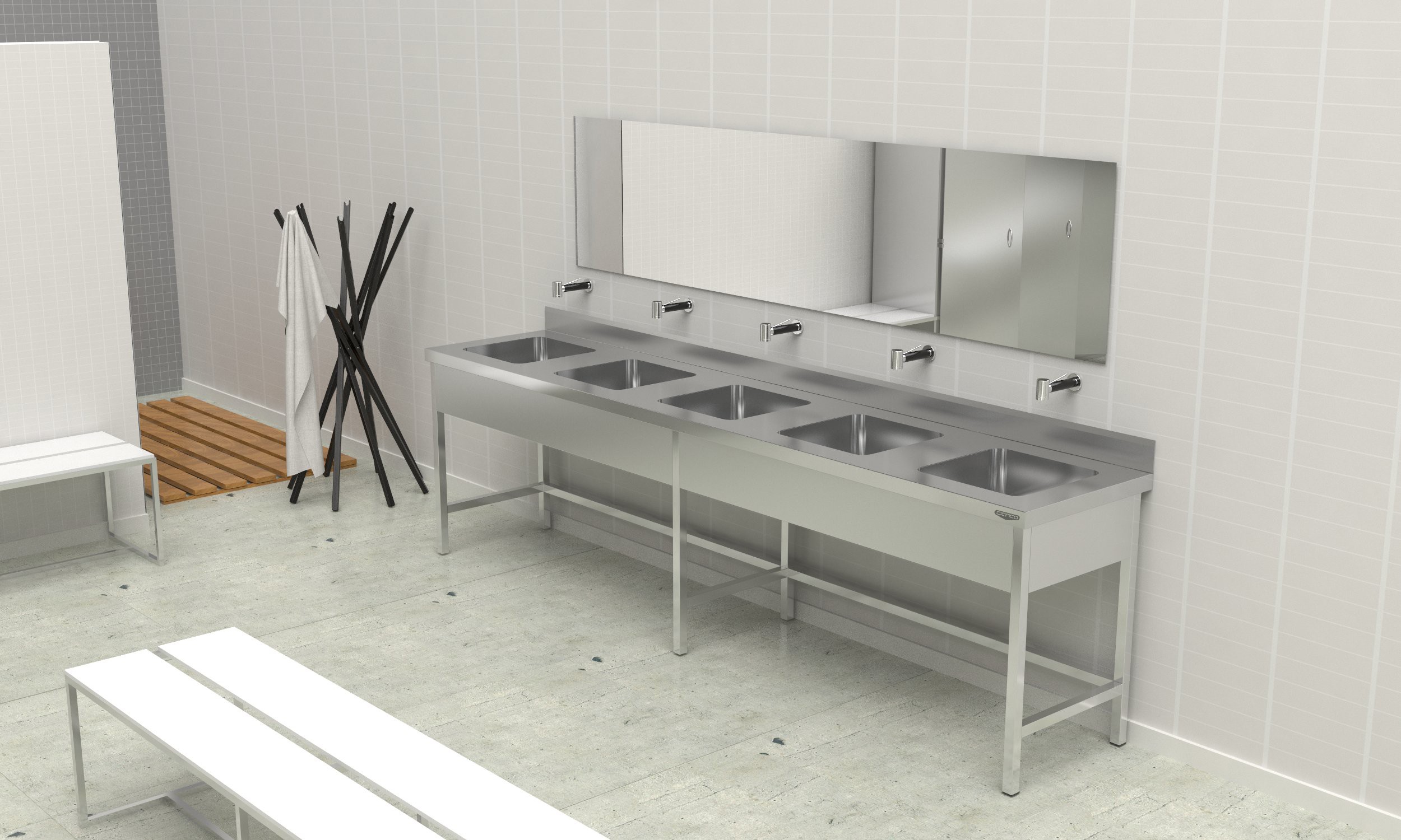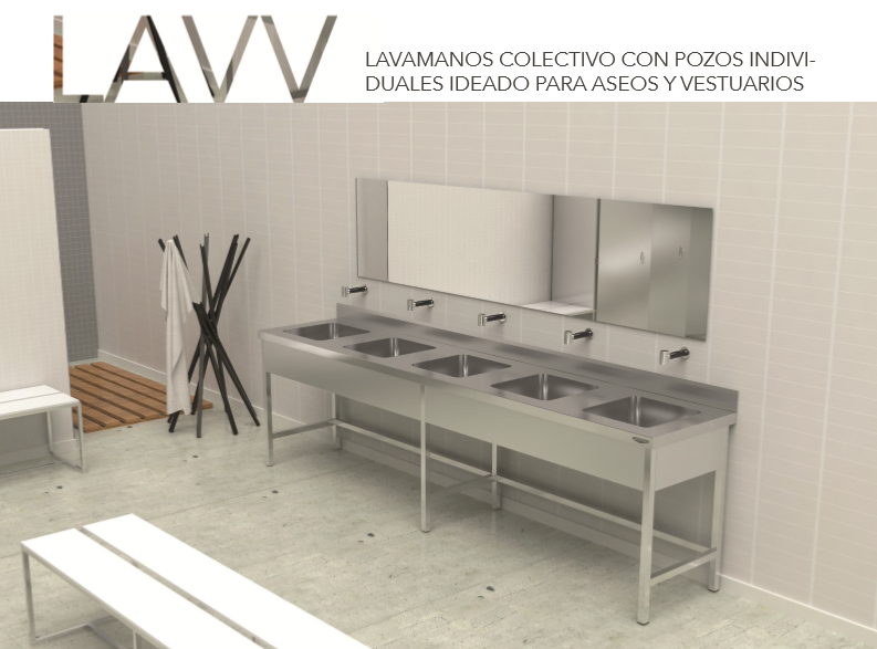 – Évier collectif fabriqué dans AISI 304 18/10.