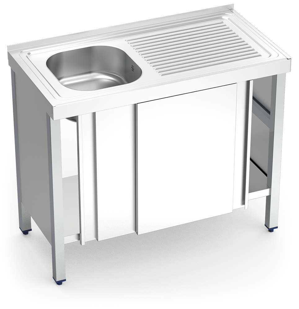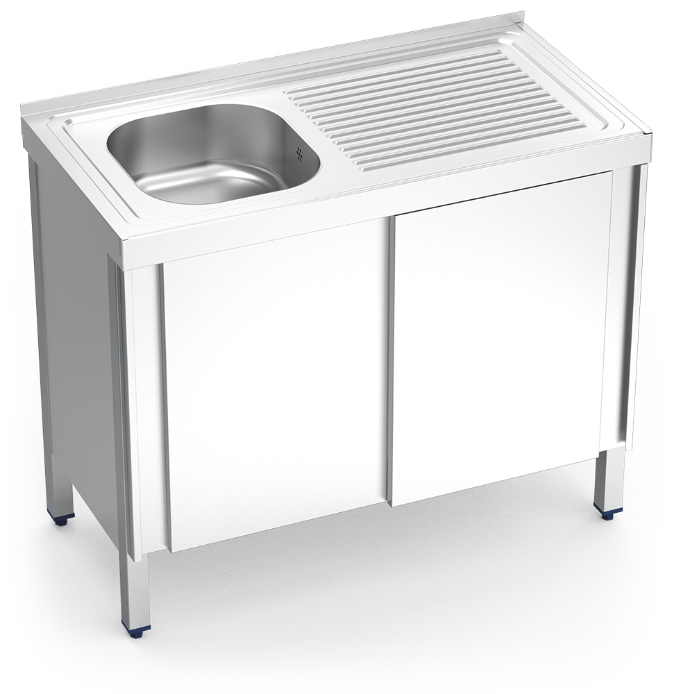 ÉVIER EN ACIER INOXYDABLE À PORTES COULISSANTES 1 CUVETTE ET ÉGOUTTOIR DROIT
