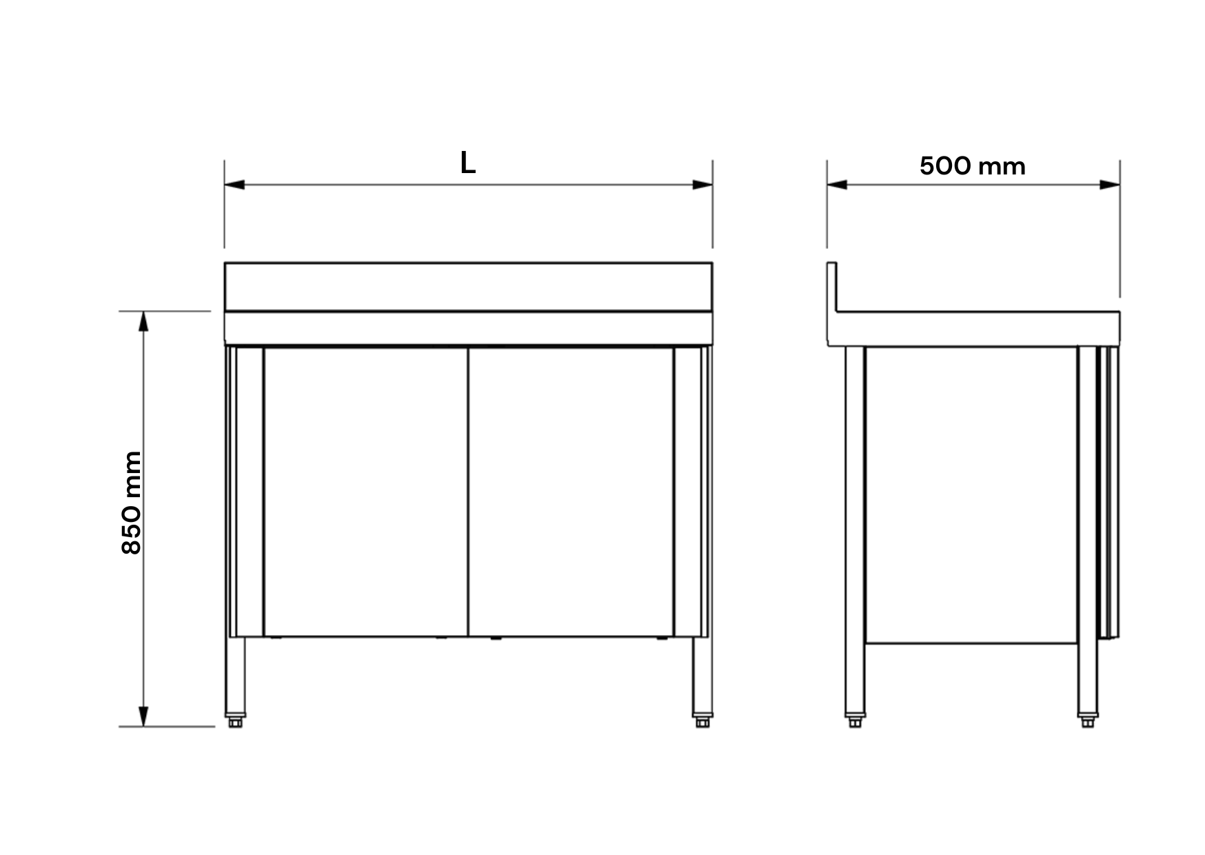 800 x 500 x 850 mm, 1000 x 500 x 850 mm, 1000 x 600 x 850 mm, 1200 x 600 x 850 mm, 1400 x 600 x 850 mm, 1000 x 700 x 850 mm, 1200 x 700 x 850 mm, 1400 x 700 x 850 mm, 1300 x 600 x 850 mm, 1300 x 700 x 850 mm