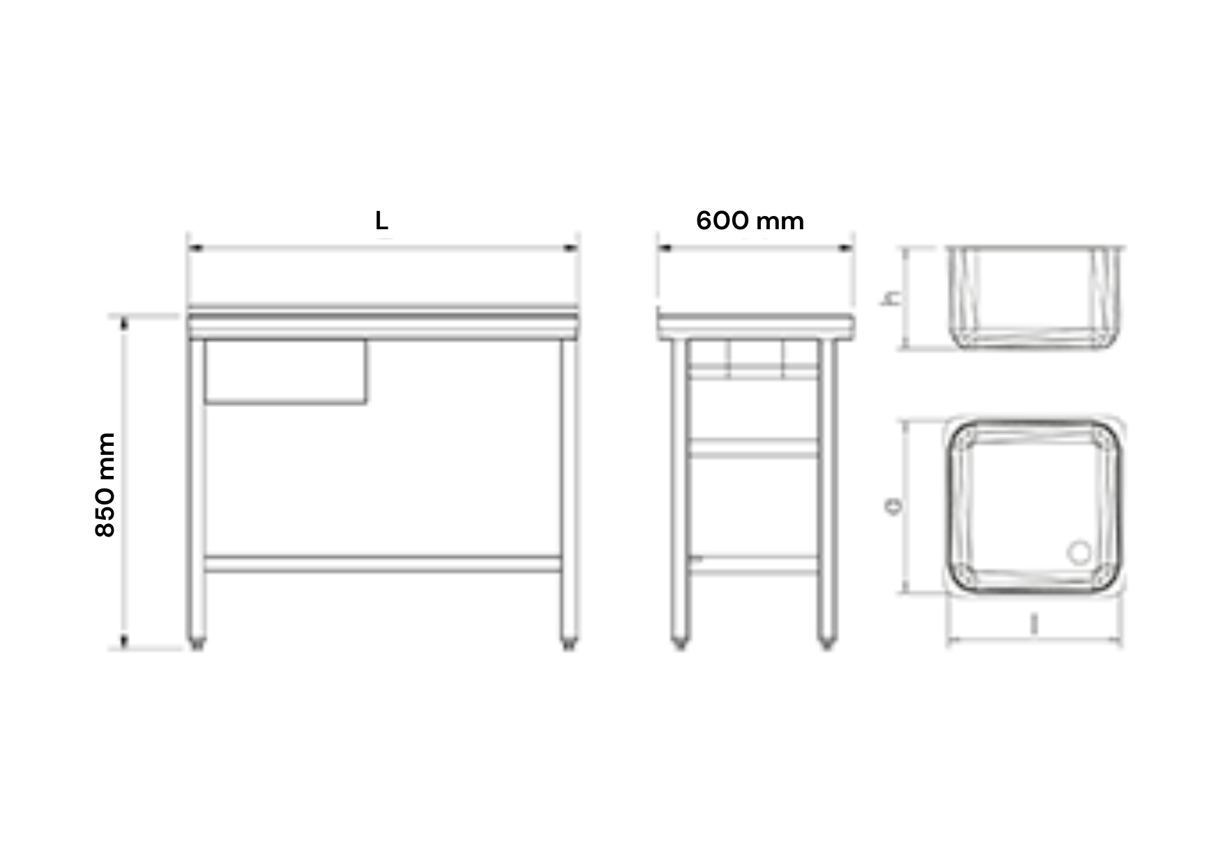 1000 x 600 x 850 mm, 1200 x 600 x 850 mm, 1300 x 600 x 850 mm, 1400 x 600 x 850 mm, 1000 x 700 x 850 mm, 1200 x 700 x 850 mm, 1300 x 700 x 850 mm, 1400 x 700 x 850 mm, 1000 x 550 x 850 mm