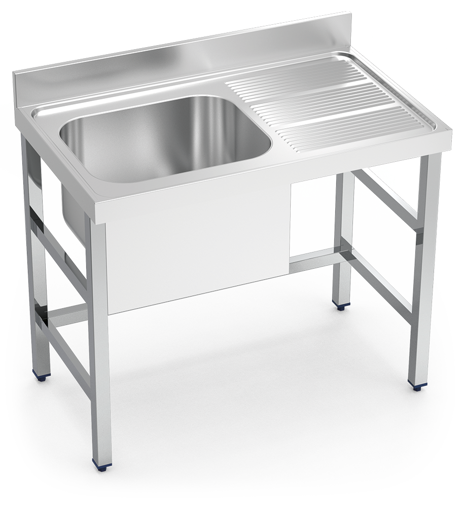 Éviers en acier inoxydable avec support. Il se compose d’un seau et d’un draineur droit.