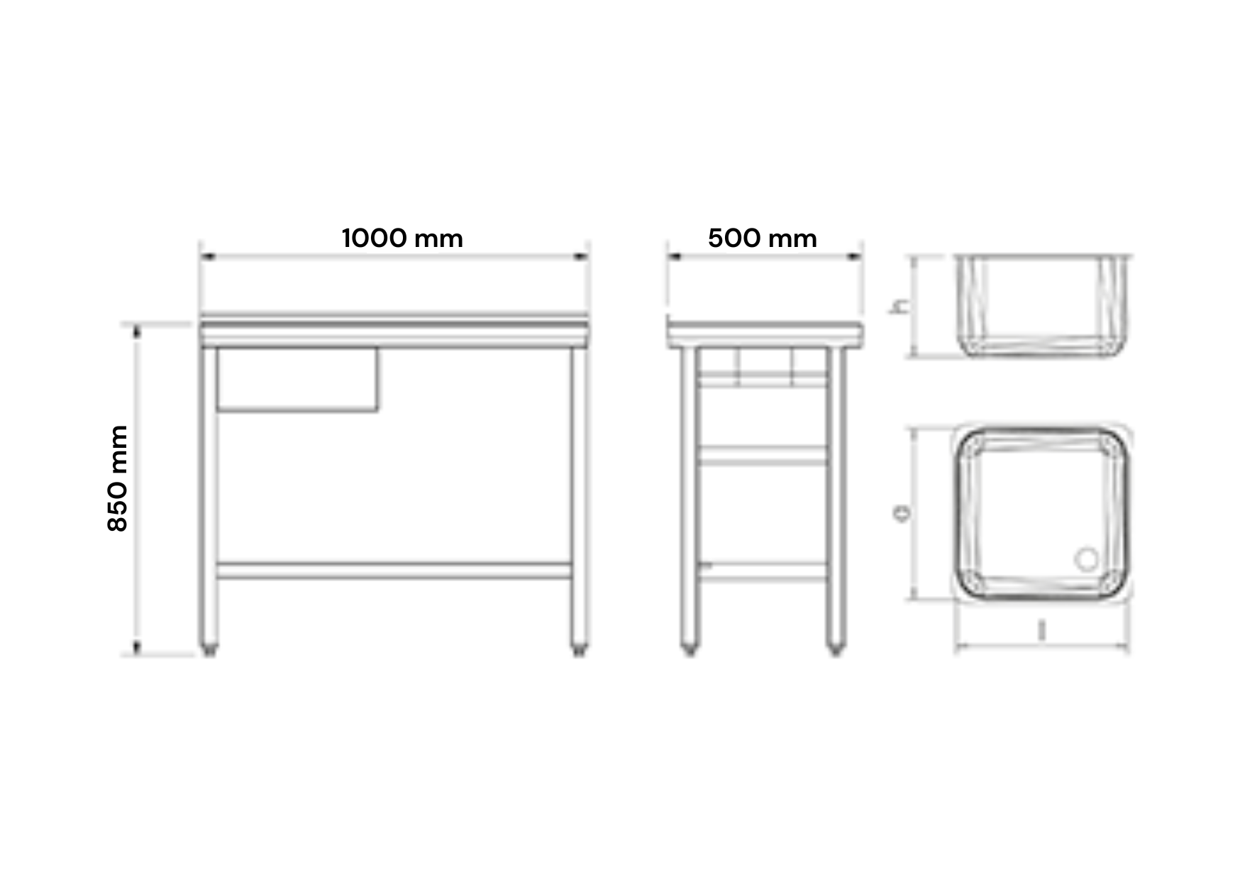 1000 x 500 x 850 mm, 800 x 500 x 850 mm