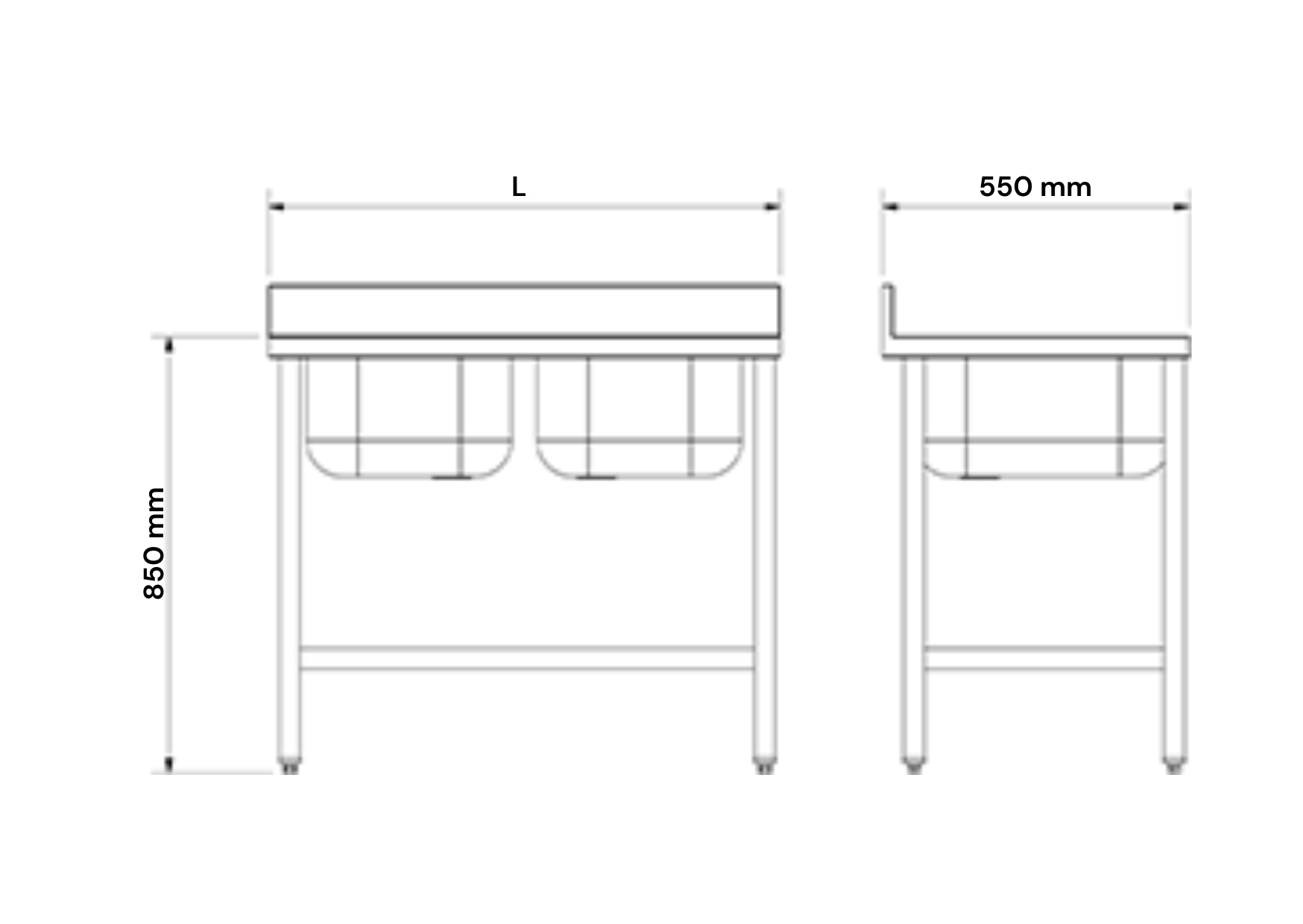 – Baqueton de 60 mm et Bib 100 mm dans les éviers de 550, 600 et 700 mm de large.