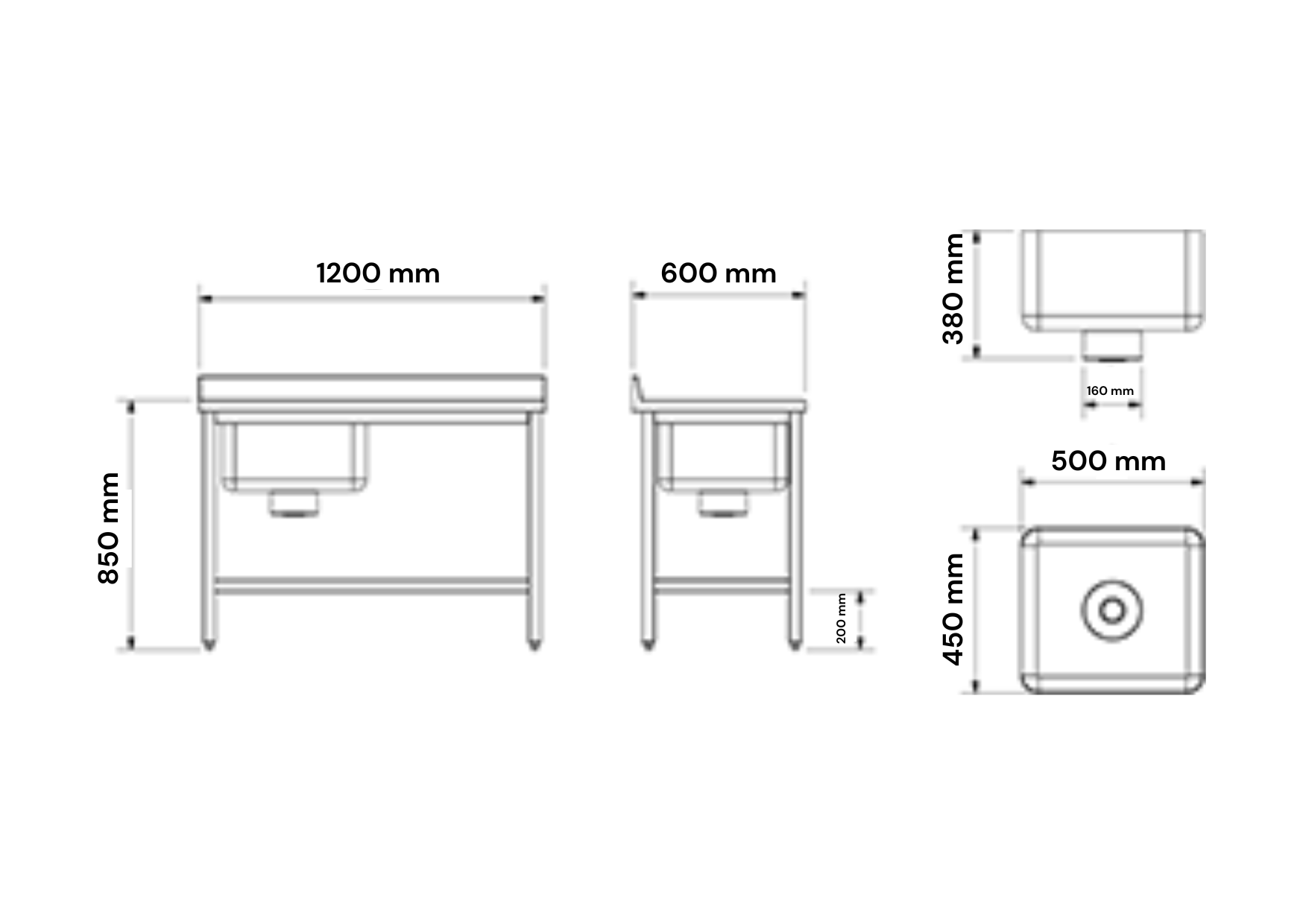 ÉVIER EN ACIER INOXYDABLE SPÉCIAL POUR PLÂTRES CUVETTE À GAUCHE