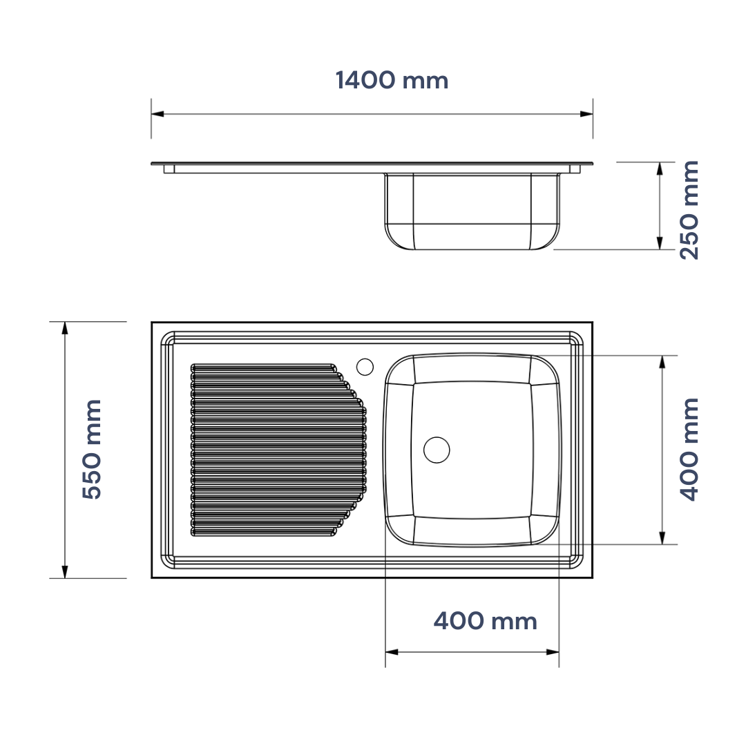 Évier en acier inoxydable de 550 mm de large avec 2 seaux et drainage, à droite ou à gauche, pour choisir.