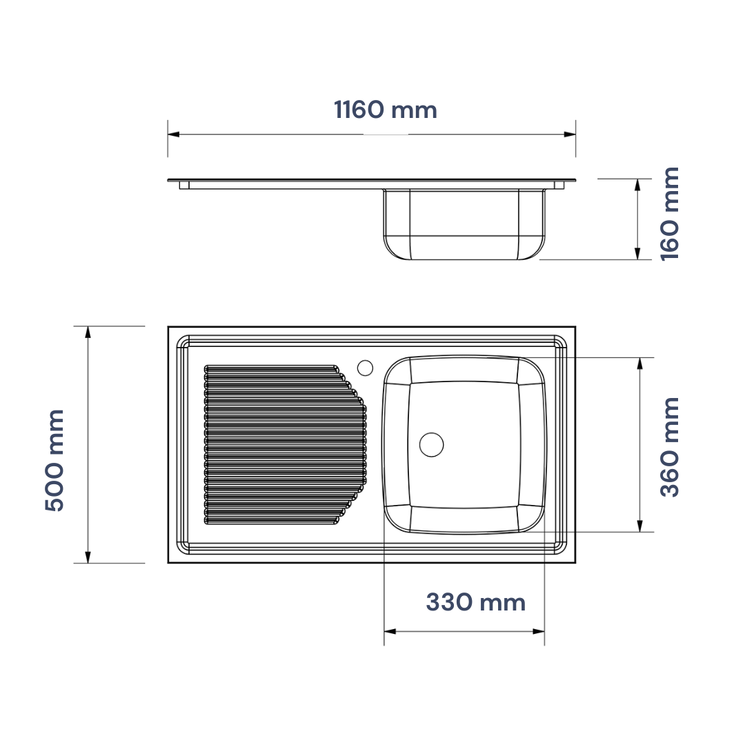 – Vanne de vidange avec bouchon et débordement dans des modèles d’arrière-plan de 500 mm.