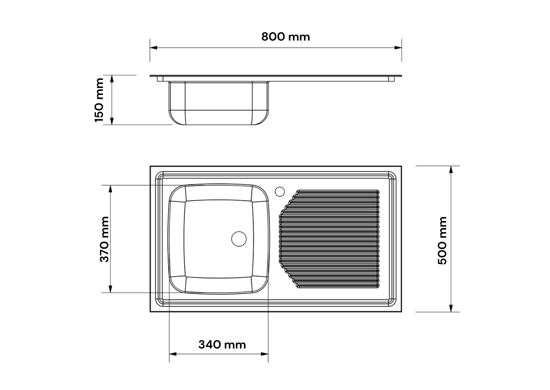 – Vanne de vidange avec bouchon et débordement dans des modèles d’arrière-plan de 500 mm.