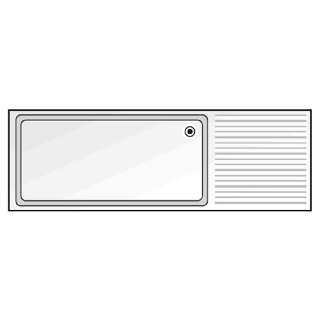 - Comptoir de profondeur de 700 mm avec évier, hauteur postérieure de 100 mm et avant de 50 mm de hauteur, totalement soudé.