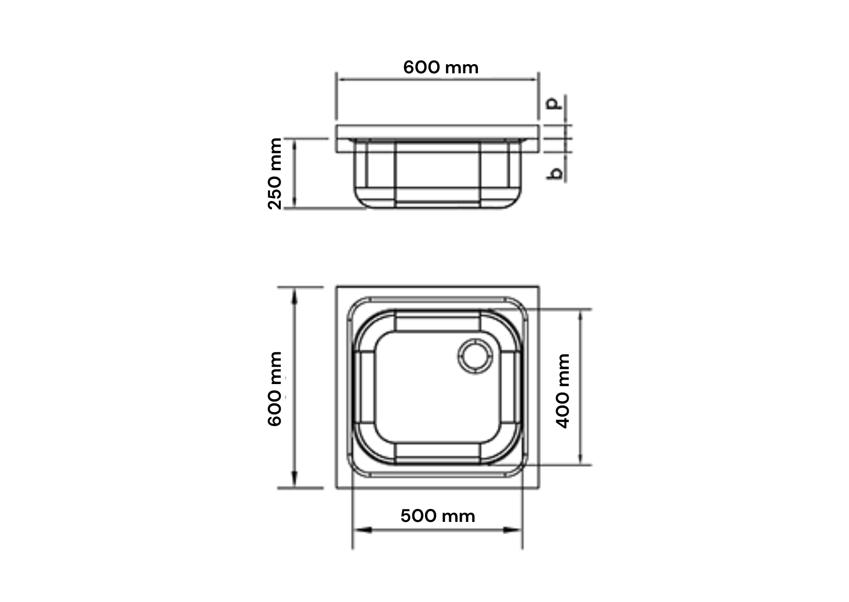 600 x 600 x 250 mm, 700 x 600 x 250 mm, 800 x 600 x 250 mm, 700 x 700 x 300 mm, 800 x 700 x 300 mm