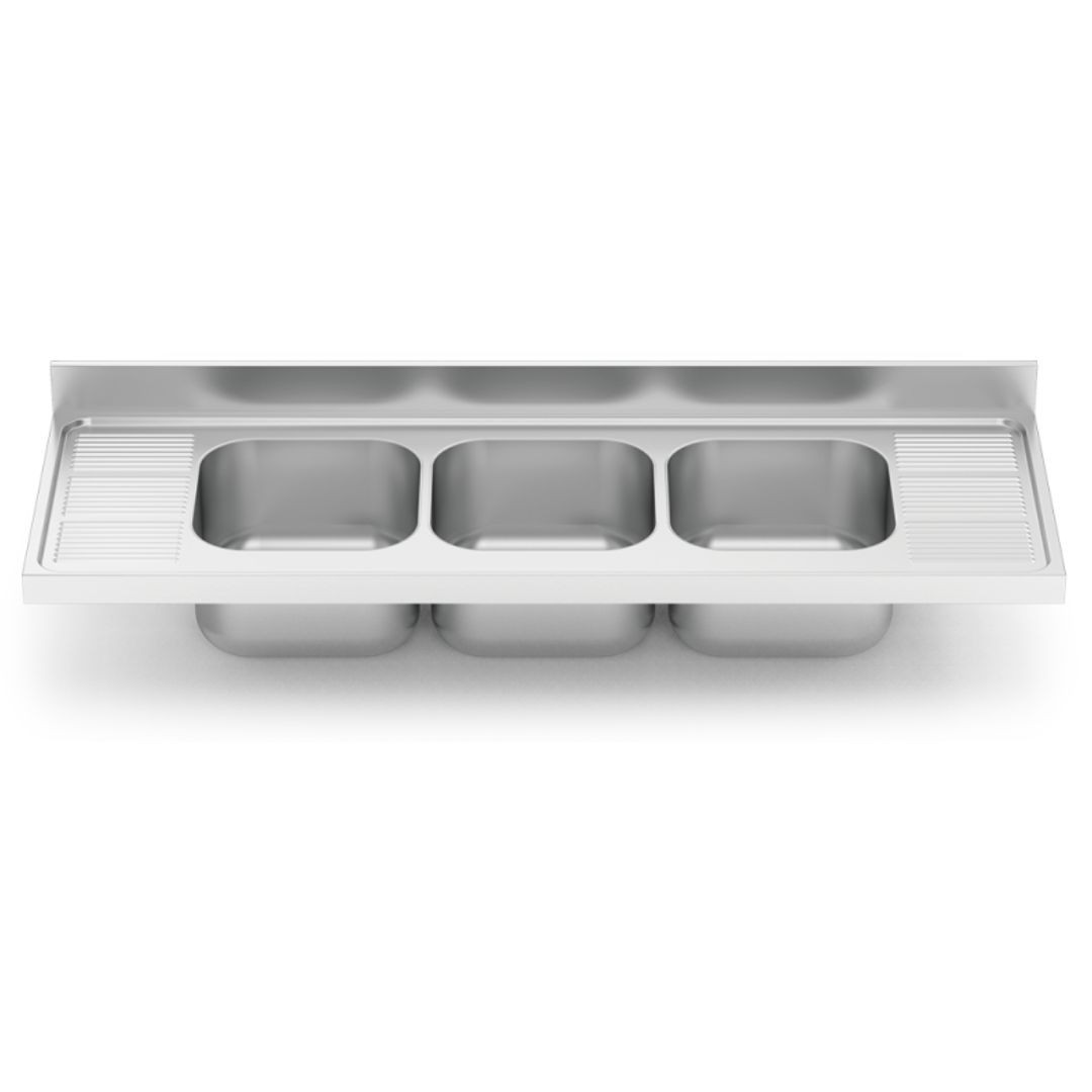 – Comprend 60 mm de baquetón et 100 mm de dossier dans les éviers de 700 mm de large.