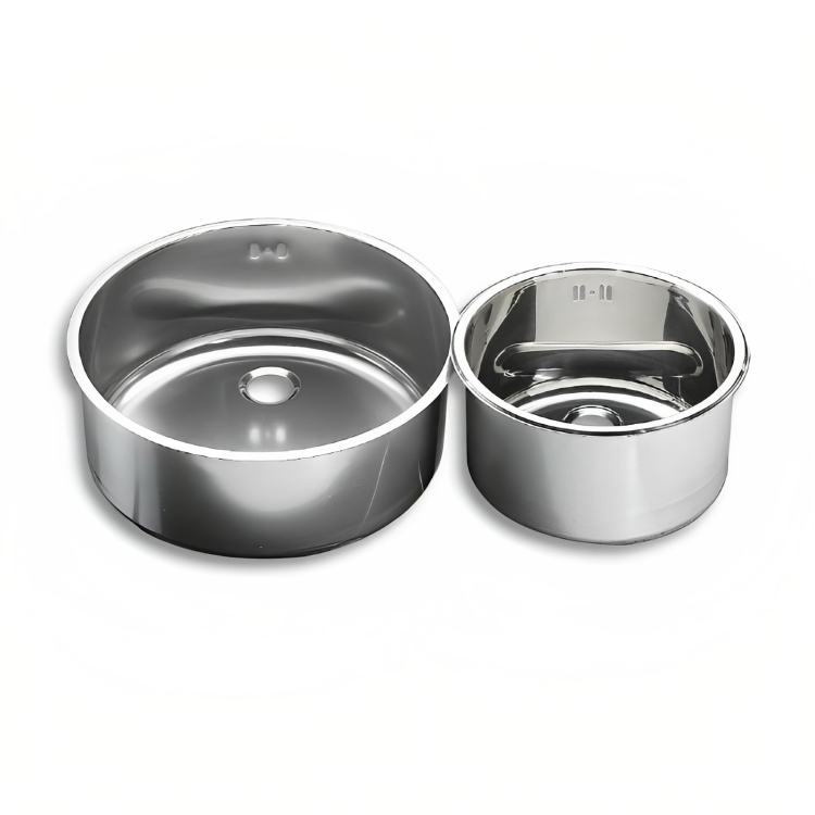 Évier fabriqué entièrement en acier inoxydable avec une forme ronde pour souder / agrandir sur le comptoir.