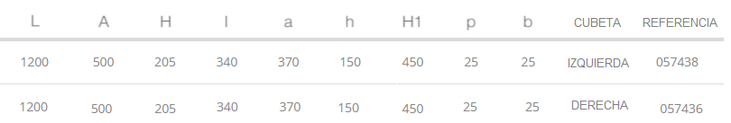 – Baquetón et Peto de 25 mm dans les éviers de 500 mm de large.