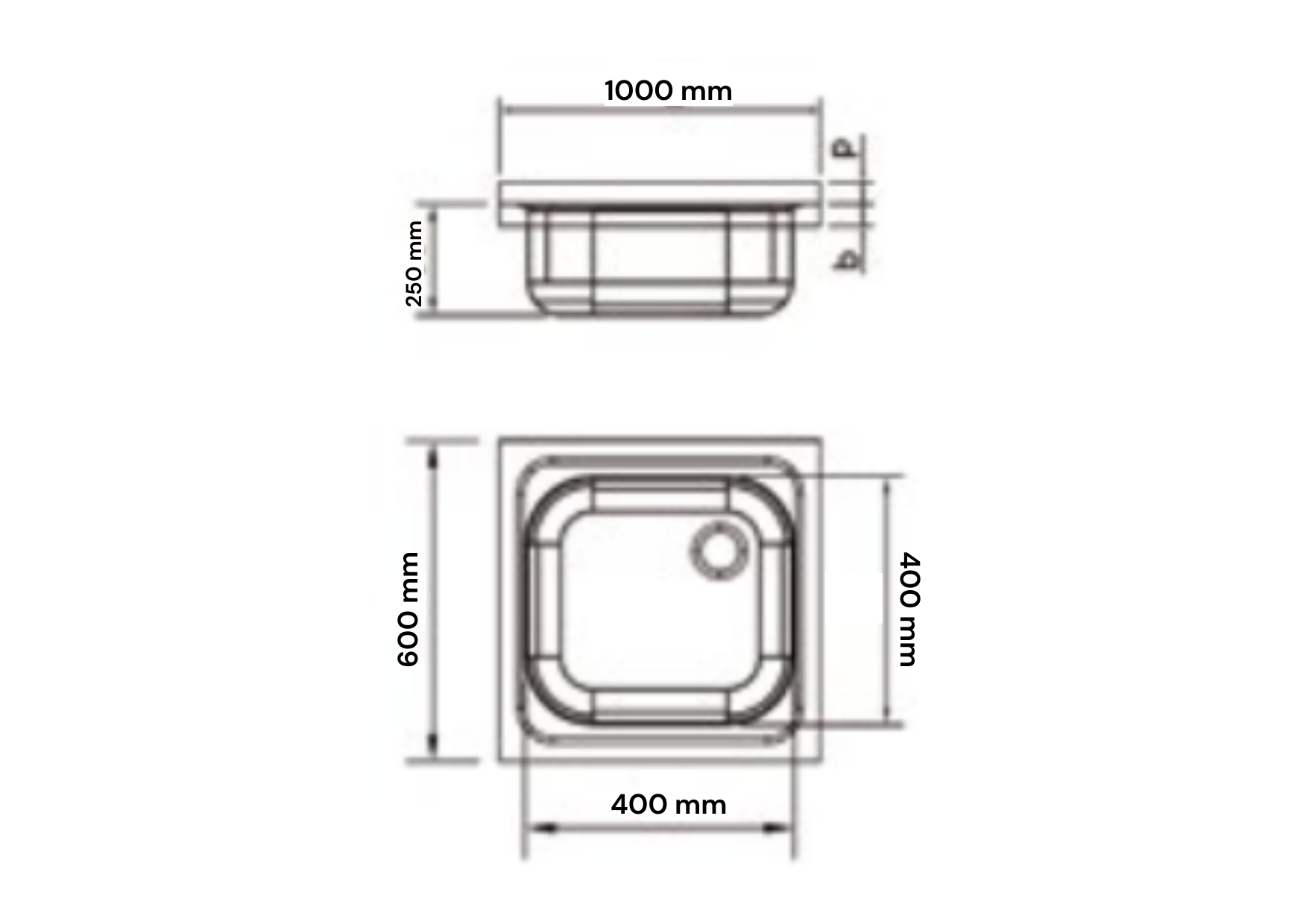 – Les modèles de 600 mm de large sont fournis avec un tube débordant et une soupape de vidange.