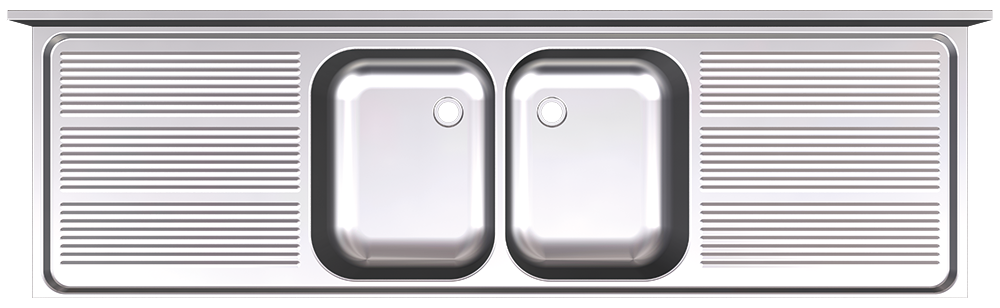 ÉVIER SUSPENDU AVEC GOUTTES, 2 SEAUX ET 2 ÉGOUTTEURS