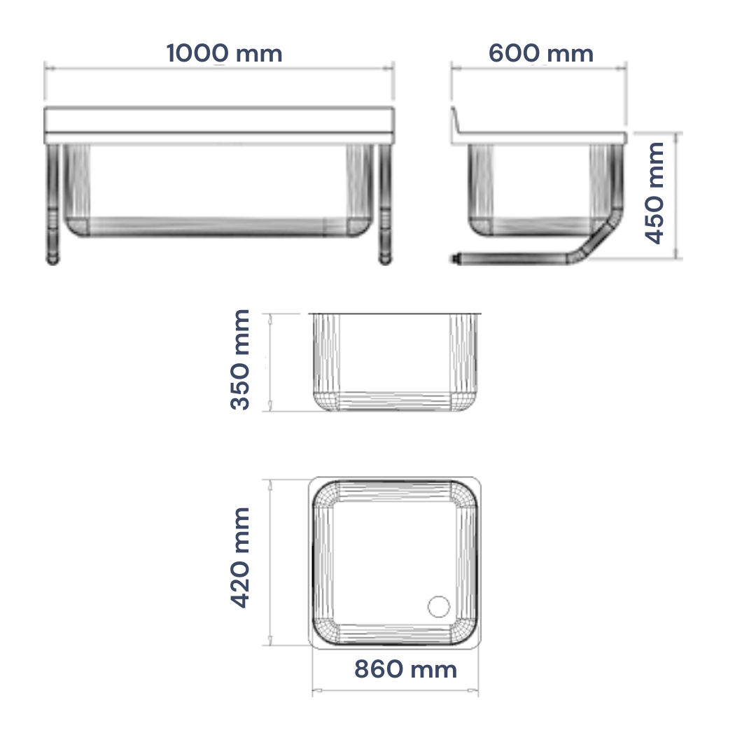 – Les modèles de 600 et 700 mm de large sont fournis avec un tube débordant et une soupape de vidange.
