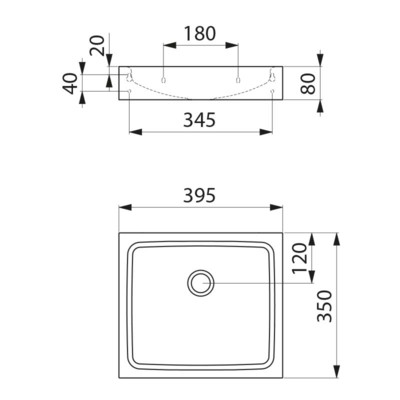 – Évier sur le comptoir ou la murale au choix, de dimensions: 350 x 395 x 80 mm.