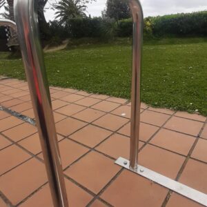 – Accessoires pour meubles en acier inoxydable dans espace extérieur.