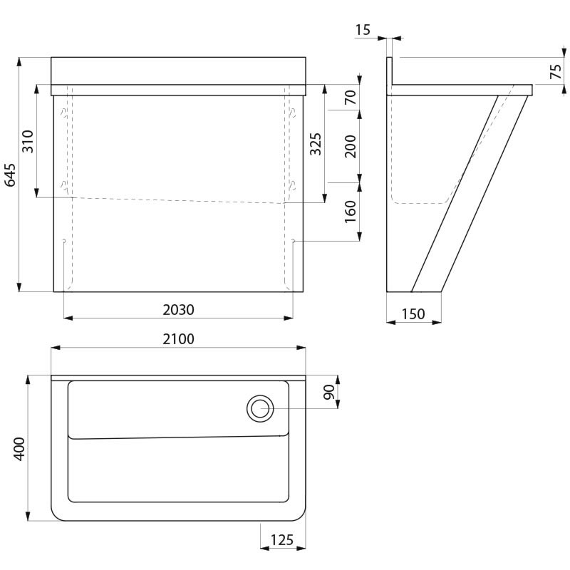 – Évier chirurgical mural avec un dossier de 75 mm