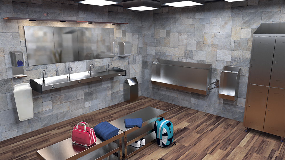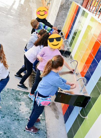 L’évier collectif pratique, est activé avec le genou, l’eau chaude ou froide (deux eaux), permet de se laver sans rien de salir pour conduire l’eau, facilement.