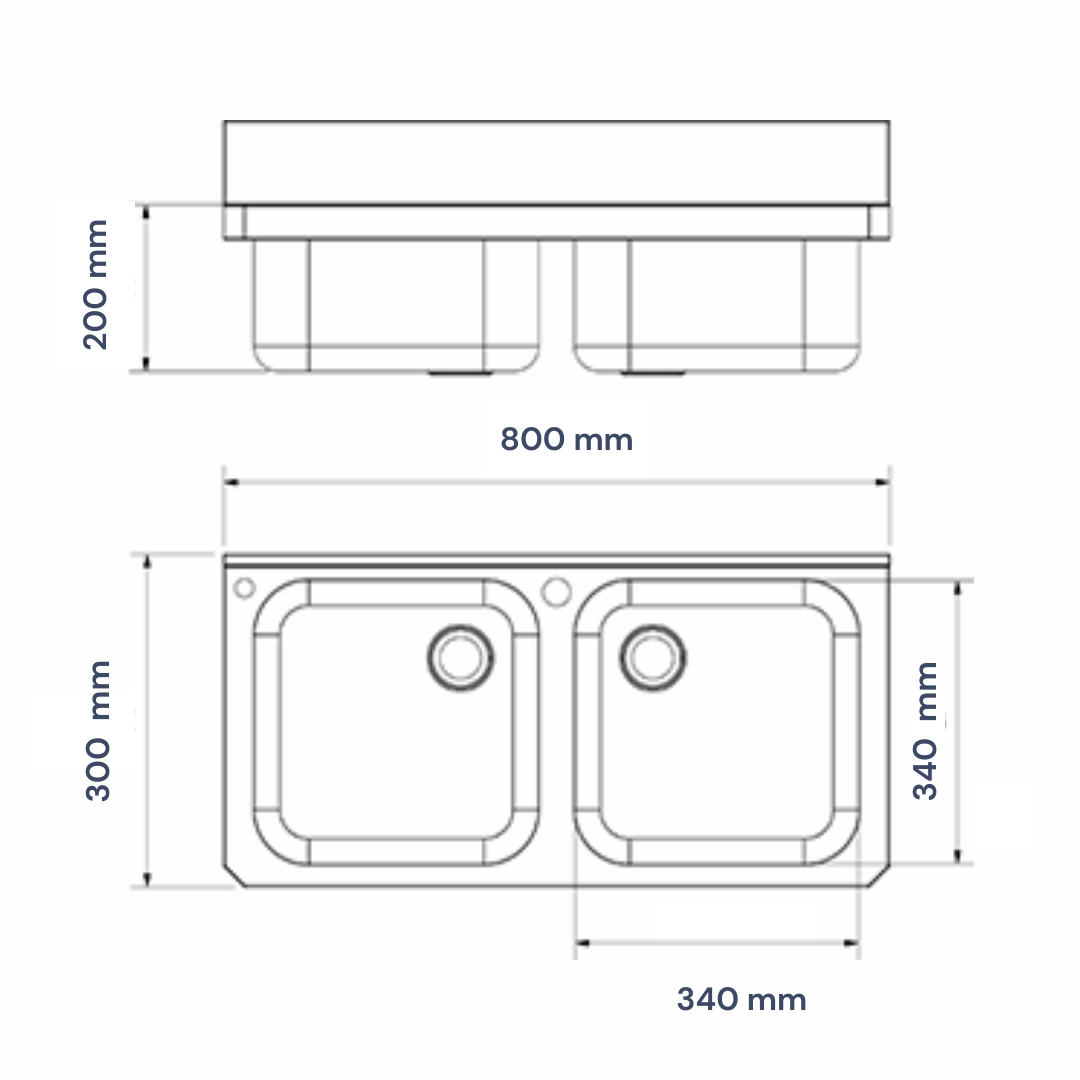 Ensemble d’évier en acier inoxydable et Fink fabriqué en acier inoxydable AISI 304 pour un mélangeur anti-répulsif. La taille XS mesure 800x400x300 mm