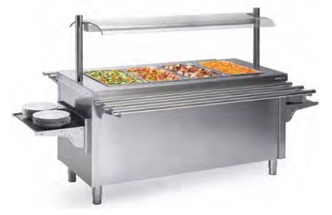 île centrale d’auto-service en acier inoxydable pour l’entretien et l’exposition des aliments chauds à la bonne température pendant le service. Trois modèles à choisir: