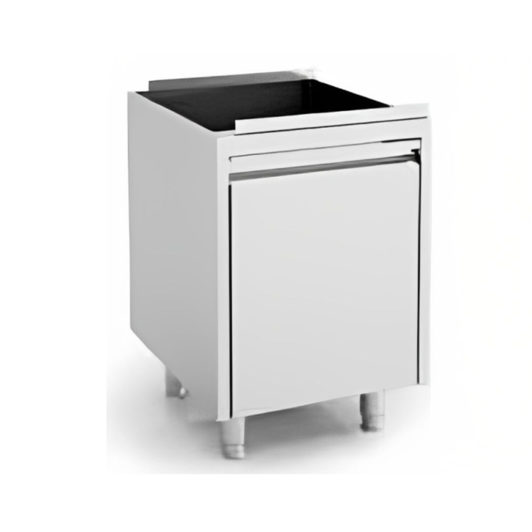 Meubles en acier inoxydable avec comptoir pour intégrer différents éléments modulaires neutres. Dans cette linéaire, un meuble est intégré aux portes et aux tiroirs (avec une option pour différentes options de tiroir. Consulter) et Bread Hopper.