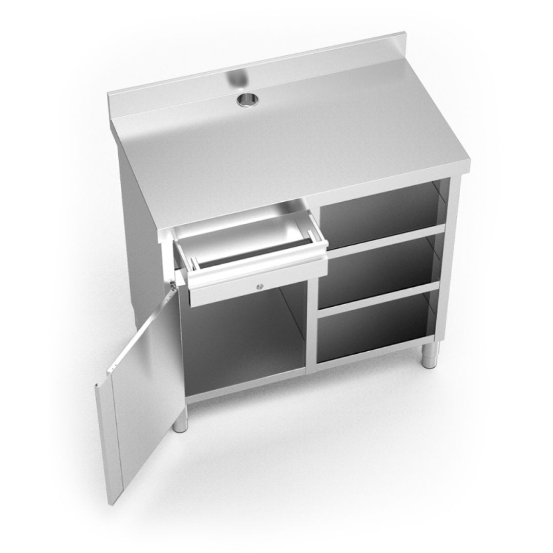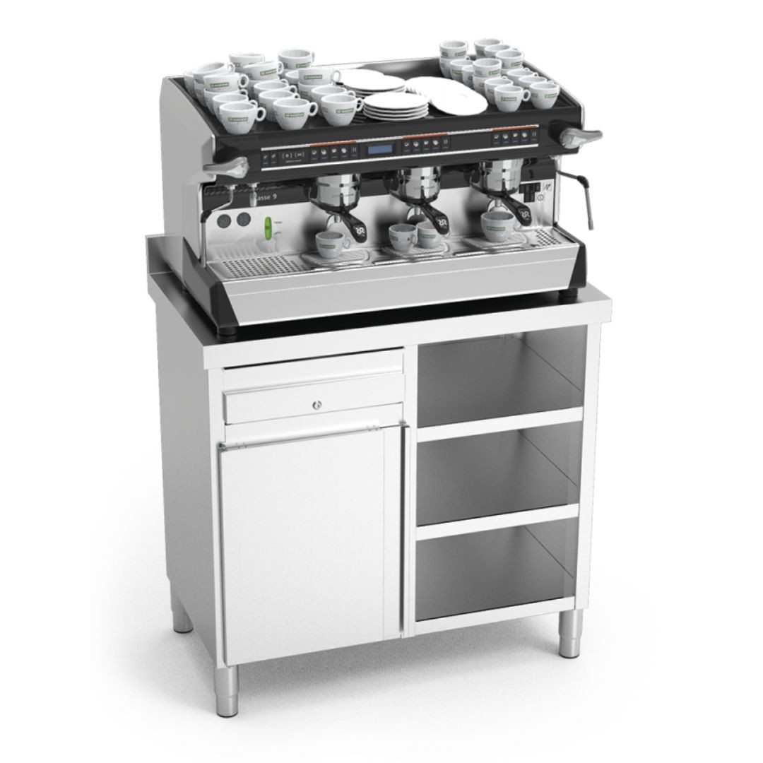 Meubles spéciaux pour les cafetières de base, complètement fabriqués en acier inoxydable.