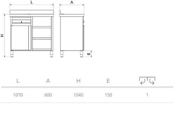 – Mesure 1070 x 600 x 1040 mm.