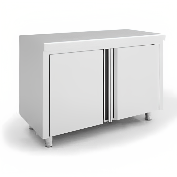 – meubles avec portes fabriqués en acier inoxydable AISI 304 18/10 avec finition satinée. Plage 600, avec une profondeur de 600 mm.