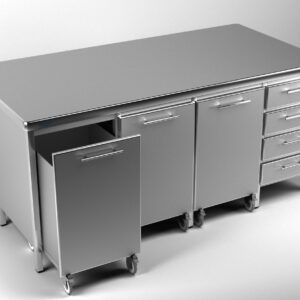 – Il est fabriqué entièrement en acier inoxydable et est totalement attaché à d’autres types de meubles créant ainsi différentes combinaisons de lignes de meubles en acier inoxydable.